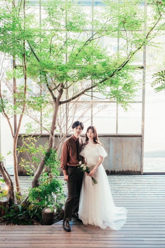 光と緑溢れるカフェ空間を使ったブライダルフォトは唯一無二。